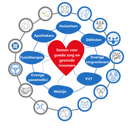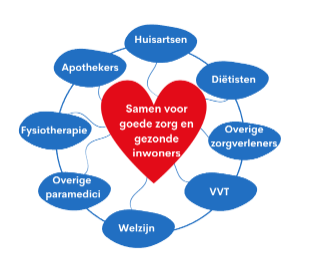 - Het realiseren van passende en afgestemde (keten)zorg door de eerstelijnszorgprofessionals (huisartsen, apothekers, fysiotherapeuten en diëtisten), welzijnsprofessionals en overige zorgverleners in Hillegom.